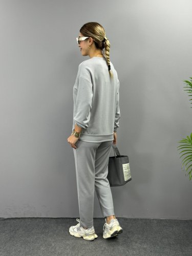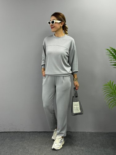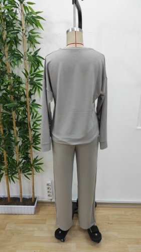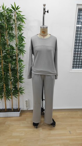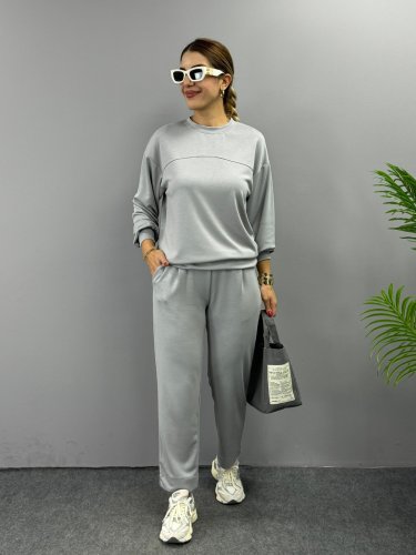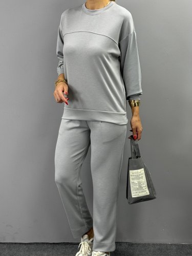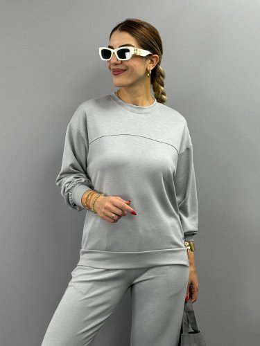 • Kadın uzun kollu bisiklet yaka viskon iki iplik bluz ve pantolon ikili takım